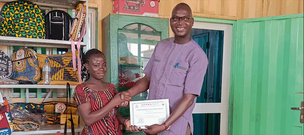 At the end of her training, Aminata received a complete sewing machine kit. With determination and creativity, she began her business right from her own room. Each month, she sews up to 30 garments, earning enough to contribute to her family’s expenses and care for her children. Her earnings, about 50,000 CFA francs (nearly $90 USD), are not just numbers; they represent dignity, independence, and the ability to dream beyond survival.